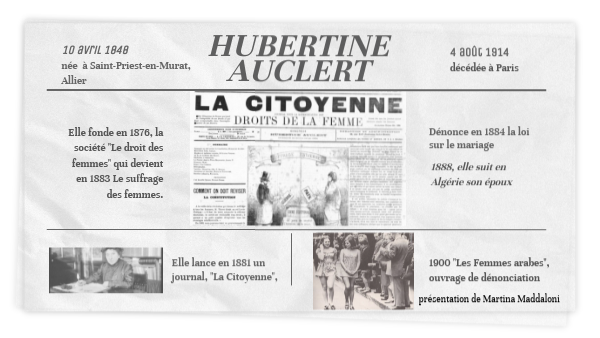 Elle fonde en 1876, la société "Le droit des femmes" qui devient en 1883 Le suffrage des femmes.