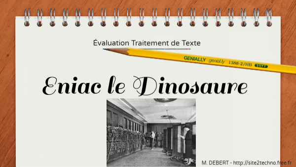 Selectionner le titre : ENIAC, LE DINOSAURE Choisir la Police : "Arial" et la taille : 14, Gras, souligné et centré.