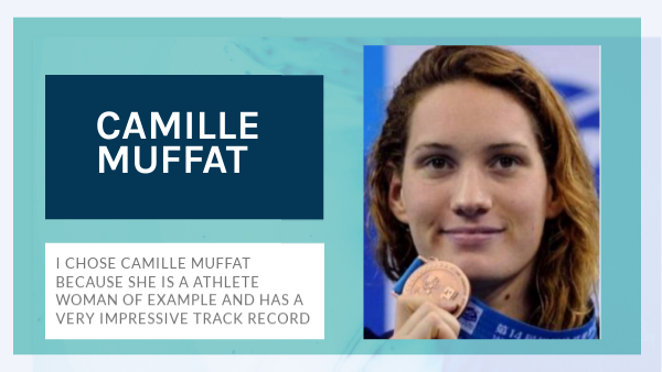 I chose to do my slideshow on Camille Muffat because she is an inspiring, courageous woman, who makes us want to go beyond our limits He is an example for many people Camille Muffat was a champion and we thank her for all that she accomplished