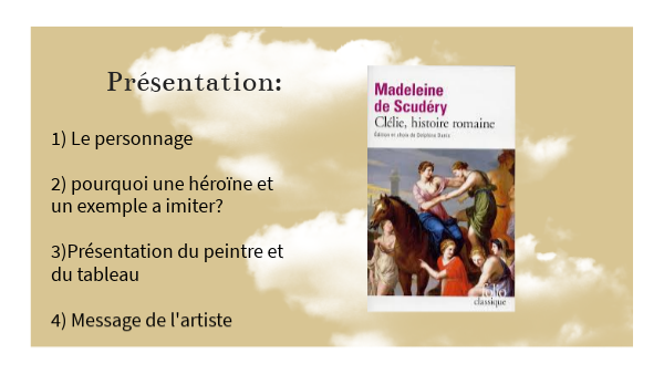 1) Le personnage 2) pourquoi une héroïne et un exemple a imiter? 3)Présentation du peintre et du tableau 4) Message de l'artiste