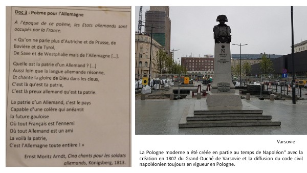 La Pologne moderne a été créée en partie au temps de Napoléon" avec la création en 1807 du Grand-Duché de Varsovie et la diffusion du code civil napoléonien toujours en vigueur en Pologne.