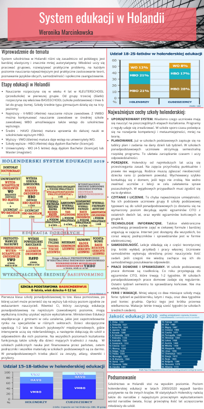 - Średni - HAVO (5letnie) matura uprawnia do dalszej nauki w szkolnictwie wyższym HBO.
