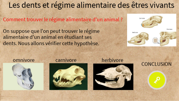 On suppose que l'on peut trouver le régime alimentaire d'un animal en étudiant ses dents. Nous allons vérifier cette hypothèse.