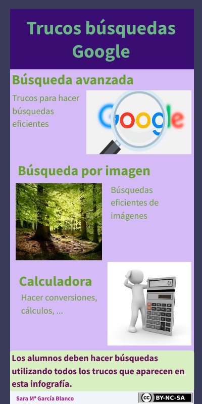 Los alumnos deben hacer búsquedas utilizando todos los trucos que aparecen en esta infografía.