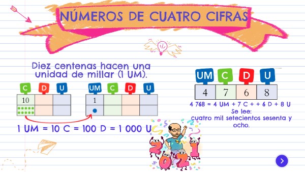 Diez centenas hacen una unidad de millar (1 UM).