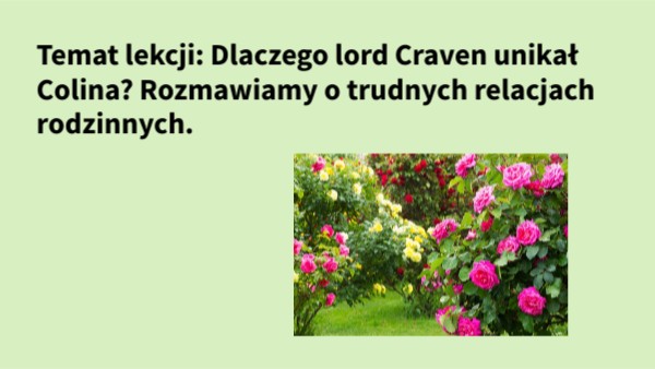 Temat lekcji: Dlaczego lord Craven unikał Colina? Rozmawiamy o trudnych relacjach rodzinnych.