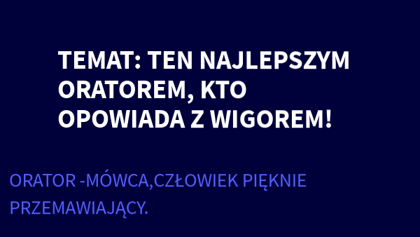 TEMAT: TEN NAJLEPSZYM ORATOREM, KTO OPOWIADA Z WIGOREM!