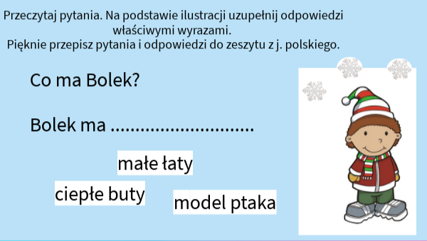 Co ma Bolek? Bolek ma .............................