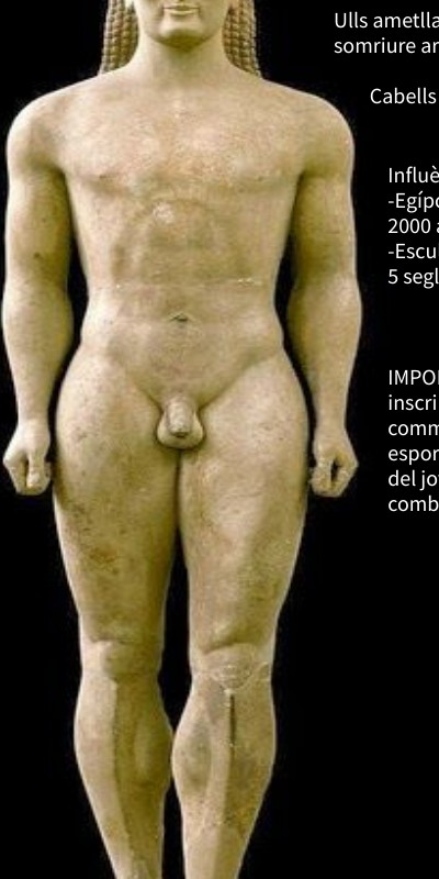 IMPORTANT: Es troba una inscripció on posa que es commemora la victòria esportiva, feta en honor del jove Kroissos (mort en combat)