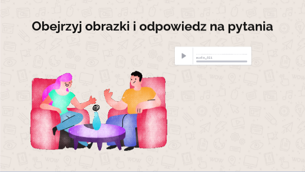 Zadaniem dziecka jest obejrzenie obrazka i udzielenie odpowiedzi na pytania. Za pierwszym razem dziecko może powtarzać elementy nagrane na głośniczku. Jeżeli dziecko miało trudność z wykonaniem zadania, warto wrócić do tego ćwiczenia później i spróbować je wykonać jeszcze raz.