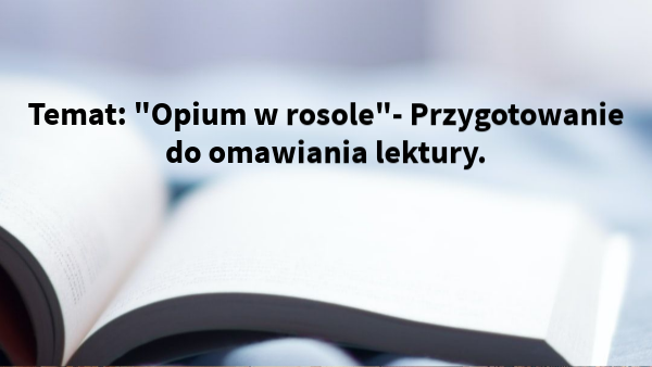 Temat: "Opium w rosole"- Przygotowanie do omawiania lektury.