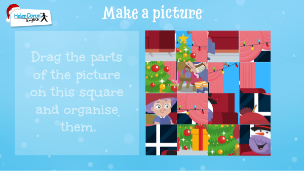 Can you organise the parts of the picture into one image. Just drag them onto the white square on the left.