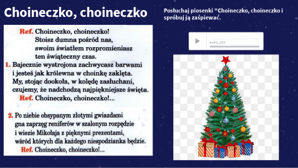 Posłuchaj piosenki "Choineczko, choineczko" i spróbuj ją zaśpiewać.