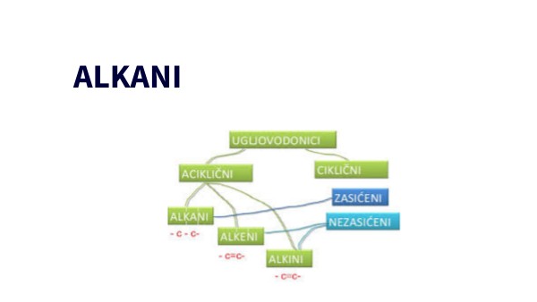 Alkani su zasićeni aciklični ugljovodonici. Drugim rečima, veze između ugljenikovih atoma su (kovalentne) jednostruke (zato su zasićeni), a nizovi ugljenika su otvoreni (zato su aciklični