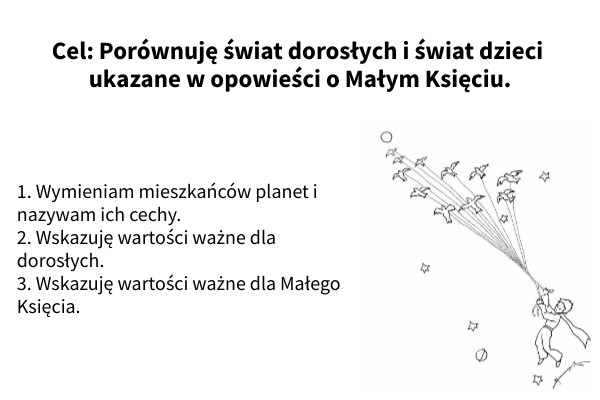 Cel: Porównuję świat dorosłych i świat dzieci ukazane w opowieści o Małym Księciu.
