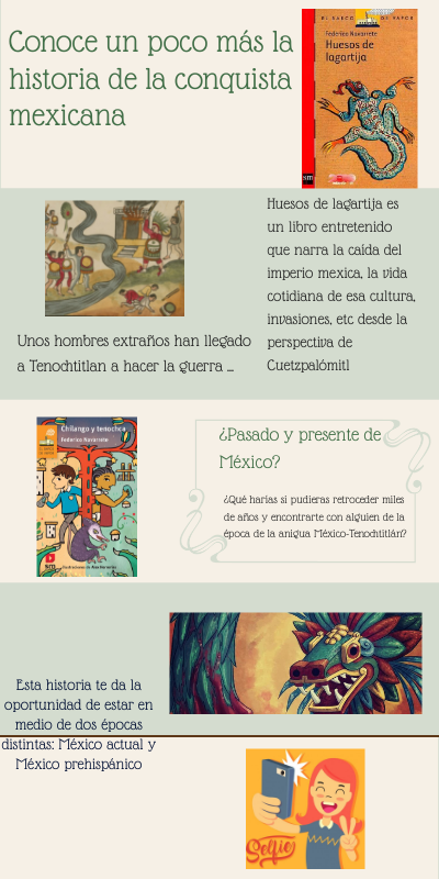 Huesos de lagartija es un libro entretenido que narra la caída del imperio mexica, la vida cotidiana de esa cultura, invasiones, etc desde la perspectiva de Cuetzpalómitl