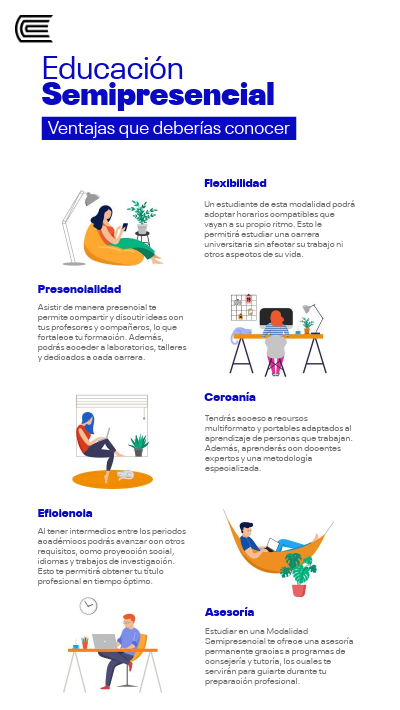 Estudiar en una Modalidad Semipresencial te ofrece una asesoría permanente gracias a programas de consejería y tutoría, los cuales te servirán para guiarte durante tu preparación profesional.