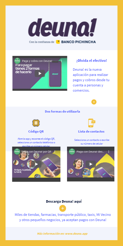 Deuna! es la nueva aplicación para realizar pagos y cobros desde tu cuenta a personas y comercios.