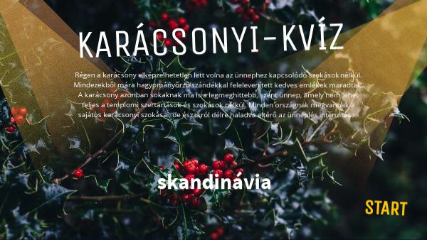 1. Dániában karácsony napján az együtt kivágott fenyőfát saját készítésű díszekkel, dán zászlócskákból álló füzérrel, piros-fehér szívecskékkel díszítik és körbetáncolják. A hat órai karácsonyi vacsora fő attrakciója a desszertként felszolgált fahéjas tejberizs, melyben elrejtenek valamit, a szerencsés megtaláló pedig egy szerencsemalacot kap. Mit kell keresni a tejberizsben?