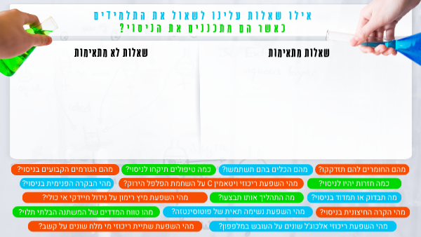 אילו שאלות עלינו לשאול את התלמידים כאשר הם מתכננים את הניסוי?