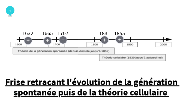 Frise retracant l'évolution de la génération spontanée puis de la théorie cellulaire