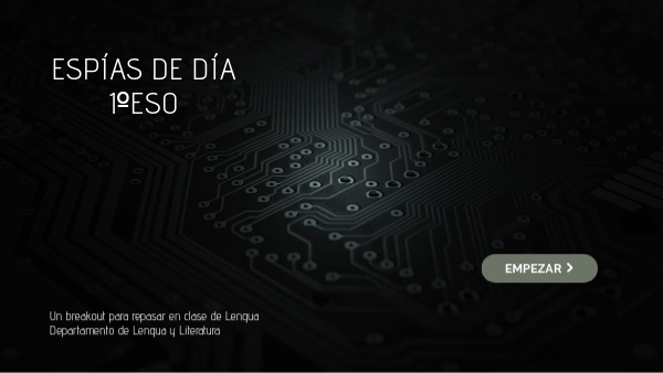 Año 2040. Hace 20 años, tras la pandemia por Coronavirus que tuvo en jaque al mundo entero, los países tomaron, entre otras medidas, la decisión de fomentar sistemas de educación a distancia. Las escuelas totalmente online fueron ganando terreno hasta acabar con las clases presenciales. En el año 2025 surge la DIA - Dirección Internacional de Alfabetización - que vela por la seguridad en las redes educativas y para que no fallen los servidores que sostienen el aprendizaje a distancia. Hace 8 años, comenzaste a trabajar como espía para esta agencia. A pesar de los riesgos, te encanta tu trabajo, pero siempre estás a la sombra de tu comisario, el señor Gramaticus. Eres muy bueno con los acertijos, pero tu jefe te supera con los conocimientos de Lengua. Llevas meses estudiando Gramática para demostrar que estás a su nivel, mientras esperas tu oportunidad...