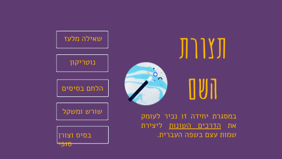 במסגרת יחידה זו נכיר לעומק את הדרכים השונות ליצירת שמות עצם בשפה העברית.