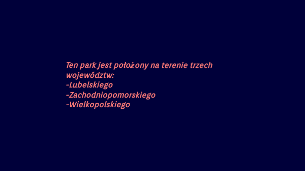 Ten park jest położony na terenie trzech województw:-Lubelskiego -Zachodniopomorskiego -Wielkopolskiego