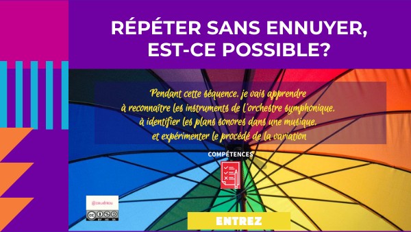 Pendant cette séquence, je vais apprendre à reconnaître les instruments de l'orchestre symphonique, à identifier les plans sonores dans une musique, et expérimenter le procédé de la variation