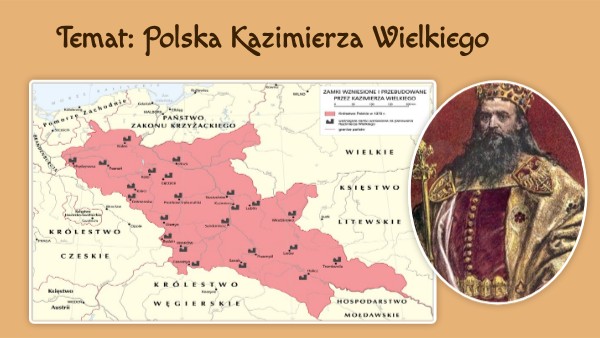 Kazimierz Wielki rządził Polską od 1333 do 1370 roku. Władca ten uczynił z Polski silne, bogate państwo, unikał wojen, rozbudowywał i budował nowe miasta. Kazał wznieść wiele zamków obronnych. Wspierał osadnictwo, rzemiosło i handel. Od potomnych otrzymał przydomek Wielki. „Kazimierz Wielki zastał Polskę drewnianą, a zostawił murowaną”.