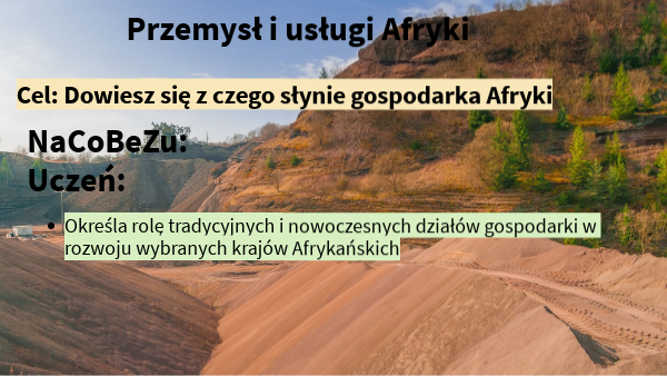 Cel: Dowiesz się z czego słynie gospodarka Afryki