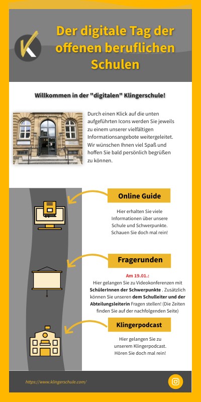 Am 19.01.:Hier gelangen Sie zu Videokonferenzen mit SchülerInnen der Schwerpunkte . Zusätzlich können Sie dem Schulleiter und der Abteilungsleiterin Fragen stellen! (Die Zeiten finden Sie auf der nachfolgenden Seite)