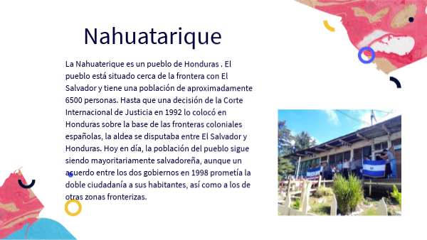 La Nahuaterique es un pueblo de Honduras . El pueblo está situado cerca de la frontera con El Salvador y tiene una población de aproximadamente 6500 personas. Hasta que una decisión de la Corte Internacional de Justicia en 1992 lo colocó en Honduras sobre la base de las fronteras coloniales españolas, la aldea se disputaba entre El Salvador y Honduras. Hoy en día, la población del pueblo sigue siendo mayoritariamente salvadoreña, aunque un acuerdo entre los dos gobiernos en 1998 prometía la doble ciudadanía a sus habitantes, así como a los de otras zonas fronterizas.