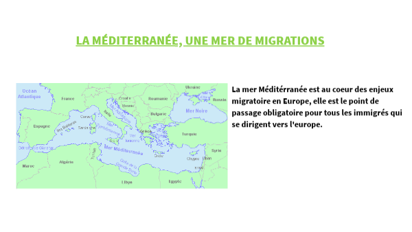 La mer Méditérranée est au coeur des enjeux migratoire en Europe, elle est le point de passage obligatoire pour tous les immigrés qui se dirigent vers l'europe.