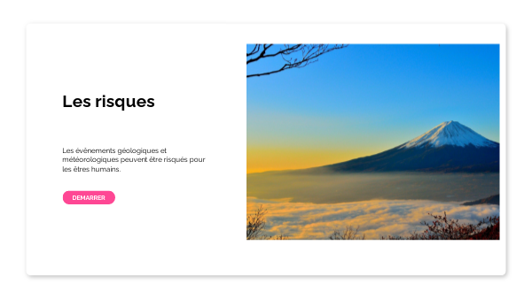 Réalisez les 5 modules dans l'ordre que vous voulez, avec en priorité: la notion de risque, le risque sismique et le risque météo.