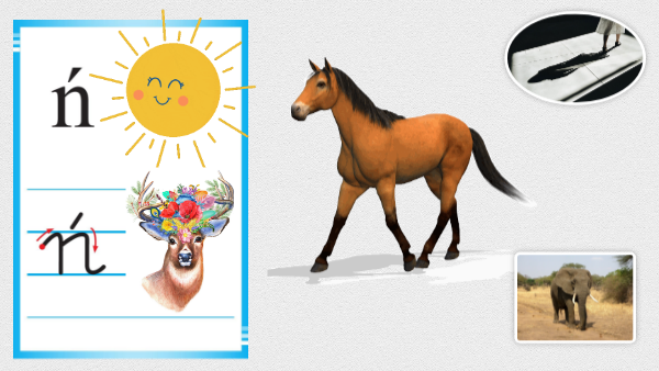 ń jest spółgłoską ten zapis stosujemy, gdy spółgłoska ń występuje przed inna spółgłoską lub na końcu wyrazu słońce, końce, cień, pień