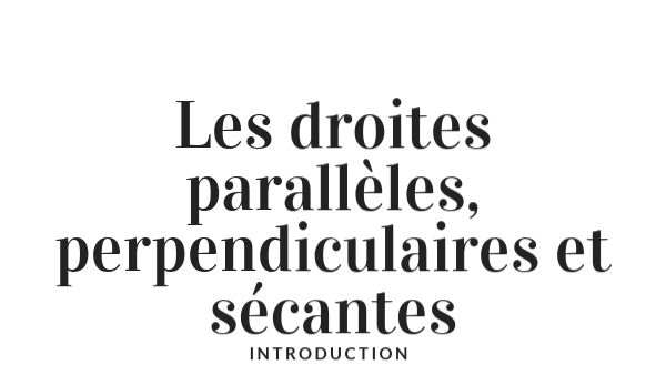 Un court descriptif de ce que sont des droites parallèles, perpendiculaires et sécantes. Egalement, une explication pour apprendre à les tracer.