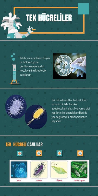 Tek hücreli canlıların büyük bir bölümü gözle görülemeyecek kadar küçük yani mikroskobik canlılardır.