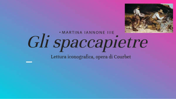 Gli Spaccapietre, un'opera di Gustave Courbet. Raffigura due uomini, spaccapietre. Si trovava nella Gemäldegalerie di Dresda, ma venne distrutto durante la seconda Guerra Mondiale. Dipinta nel 1849, le sue dimensioni sono di 165 x 257 ,GUSTAVE COURBET (1819-1877). E’ il pittore francese che per primo usò il realismo pittorico per criticare la società del tempo.