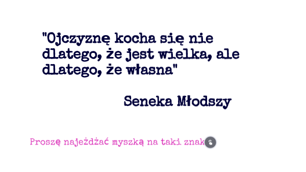 "Ojczyznę kocha się nie dlatego, że jest wielka, ale dlatego, że własna"Seneka Młodszy