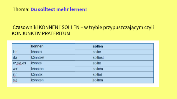 Thema: Du solltest mehr lernen! Czasowniki KÖNNEN i SOLLEN – w trybie przypuszczającym czyli KONJUNKTIV PRÄTERITUM