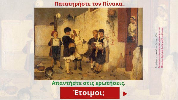 Τα Κάλαντα, Νικηφόρος Λύτρας, 1872 Βασισμένο σε ερορταστικό εργαστήριο του Μουσείου Σχολικής Ζωής και Εκπαίδευσης