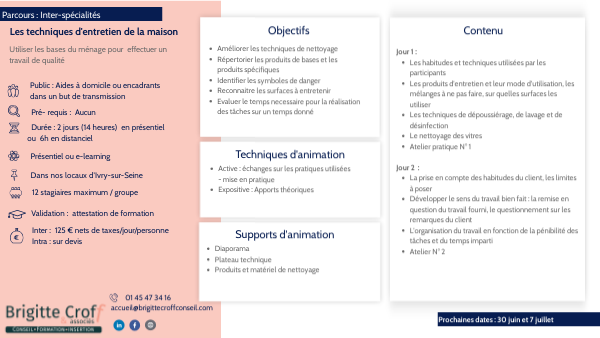 - Personne en situation de handicap : nous contacter pour voir ensemble comme adapter la formation