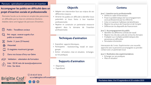 Accompagner les publics en difficulté dans un projet d'insertion sociale et professionnelle