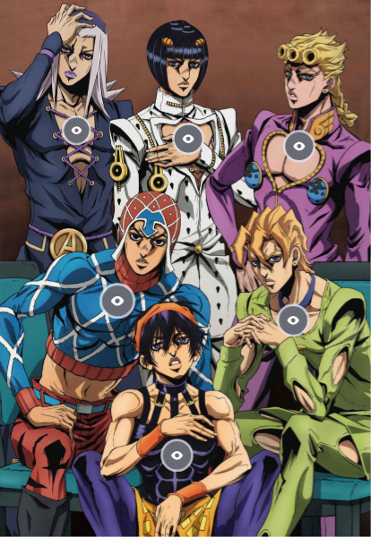 This interactive image features characters specifically from Bruno Buccirati's group from JoJo's Bizarre Adventure: Part 5.
