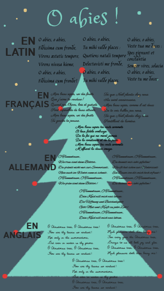 O abies, o abies, Fidissima cum fronde, Virens æstatis tempore, Virens nivosa hieme, O abies, o abies, Fidissima cum fronde !