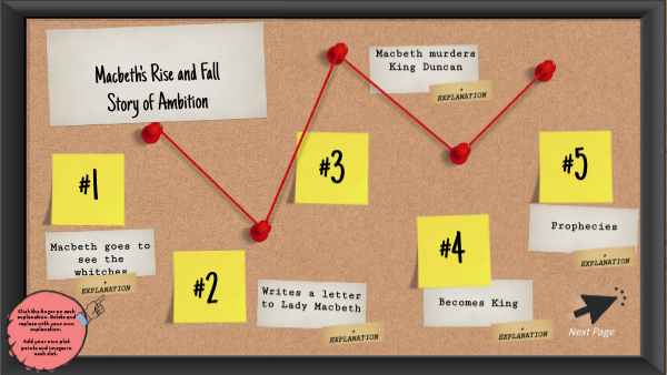Click the finger on each explanation. Delete and replace with your own explanation. Add your own plot points and images in each slot.