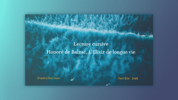 Lecture cursive Honoré de Balzac, L'Elixir de longue vie