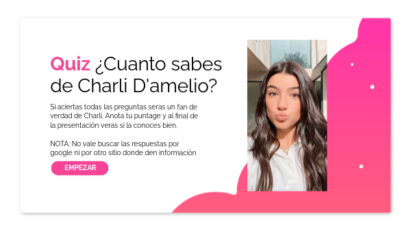 Si aciertas todas las preguntas seras un fan de verdad de Charli. Anota tu puntage y al final de la presentación veras si la conoces bien. NOTA: No vale buscar las respuestas por google ni por otro sitio donde den información