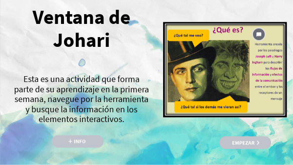 Esta es una actividad que forma parte de su aprendizaje en la primera semana, navegue por la herramienta y busque la información en los elementos interactivos.
